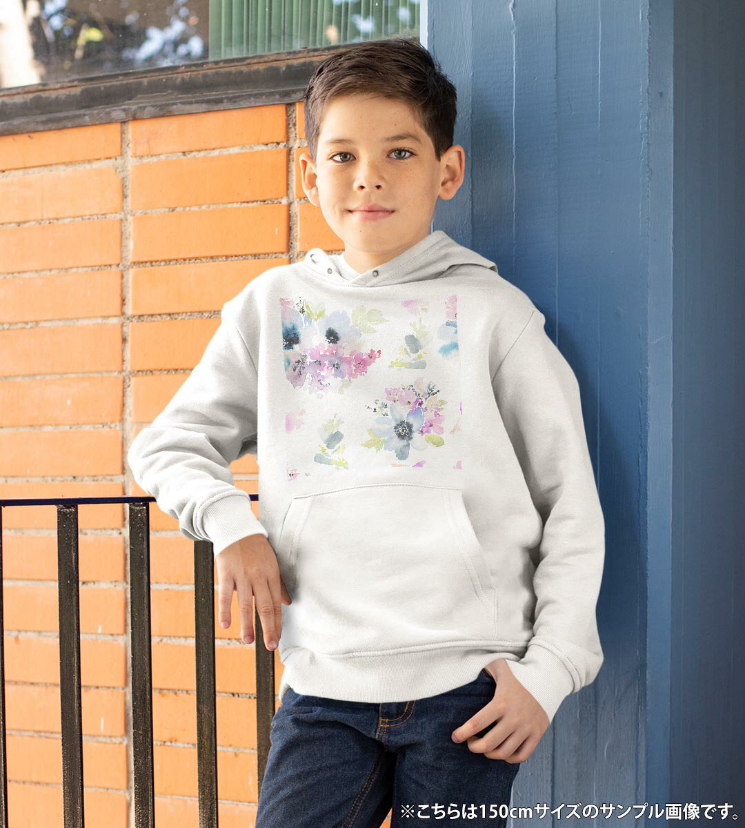 パーカー キッズ ホワイト グレー ブラック デザイン 110 130 150 parker hooded sweatshirt フーディ 白 黒 灰色 子供 男の子 女の子 011110 花 水彩 カラフル