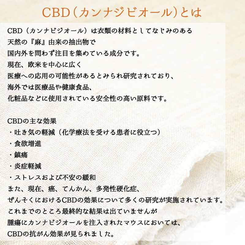 ・CBDには、同じく麻の成分であるテトラヒドロカンナビノール(THC)のような精神作用はありません。